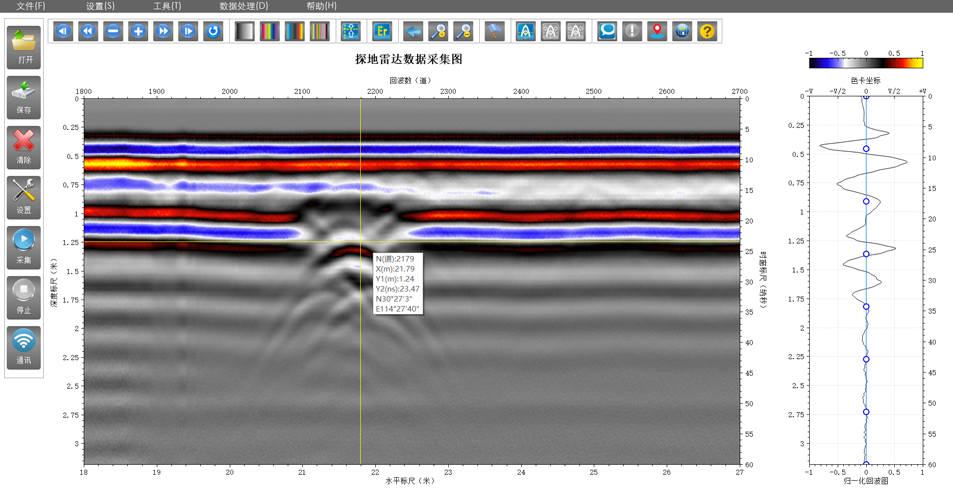 2、可動態調試雷達波形參數,如:時窗、信號位置、采樣點數等;