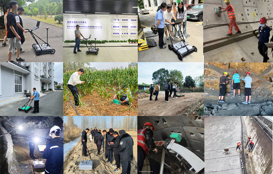 工程地質勘查:地下地質隱患如河堤、壩基的管涌探測,巖溶、塌陷、地下空洞、破碎帶、礦山采空區探測等的信息,蟻穴探測,解決地質分層、地質與環境評價、建筑物質量檢測(檢測墻體裂縫、 空洞、鋼筋分布等),地基處理效果檢測等