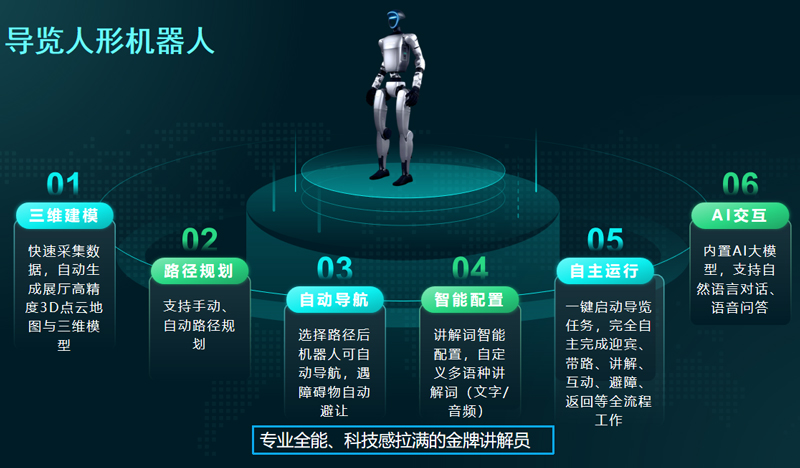 基于原生硬件,世隆科技為SL-G1注入了專屬導覽大腦與核心功能,實現從“通用機器人”到“專業導覽員”的蛻變: