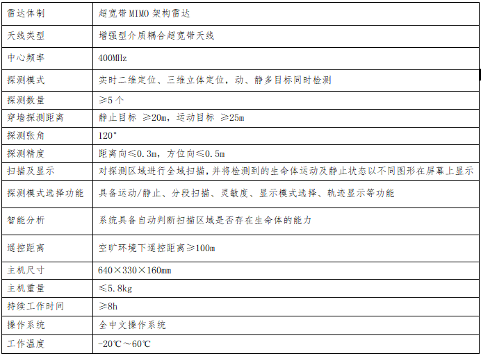 采用低頻超寬帶雷達技術,可穿透廢墟等復雜介質