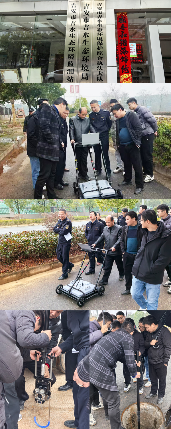 武漢世隆科技有限公司吉安市吉水生態環境局SL-GPR無線探地雷達(暗管探測儀)和SL-HD高清無線管道潛望鏡順利交付