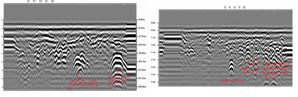 看,金屬管由于異常反應大,測試波形很清晰。而非金屬管線,相對而言,異常反應較小,