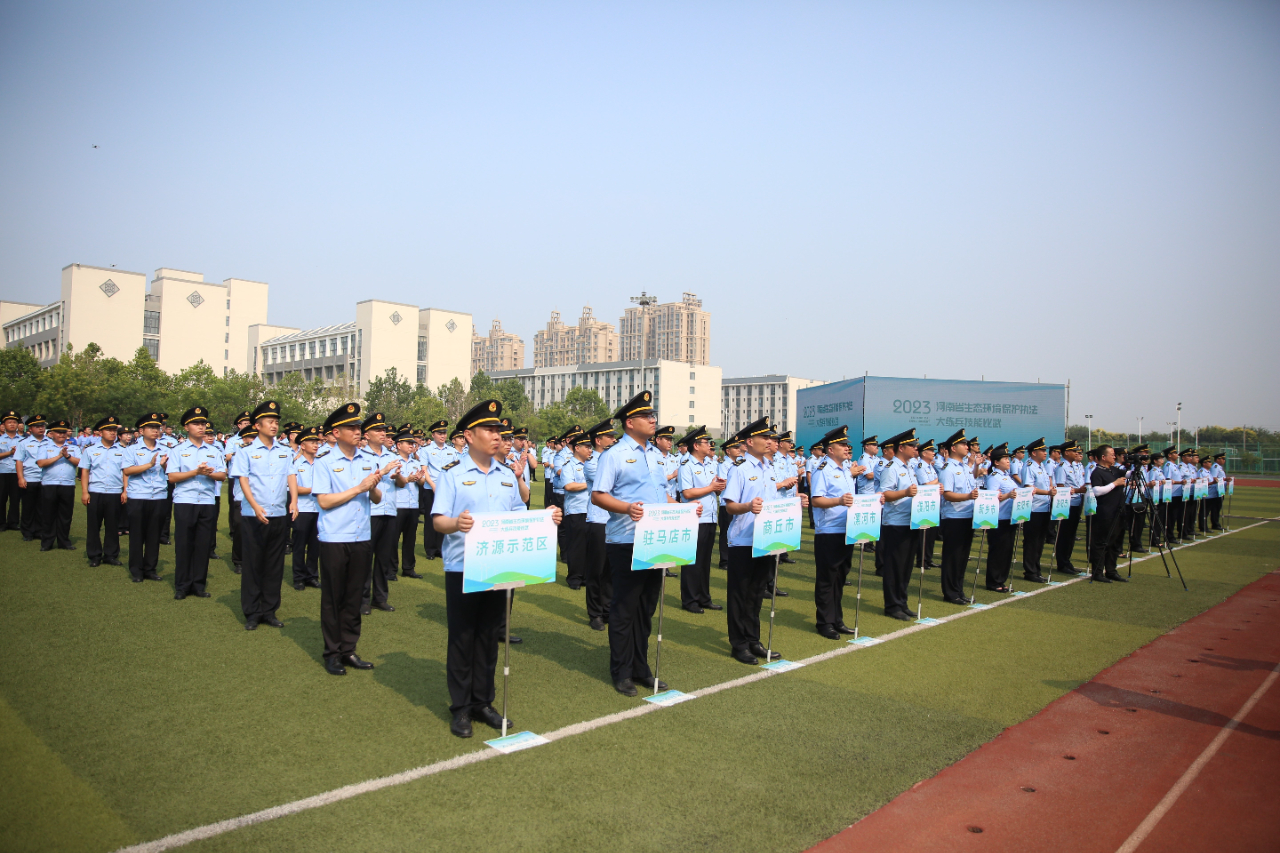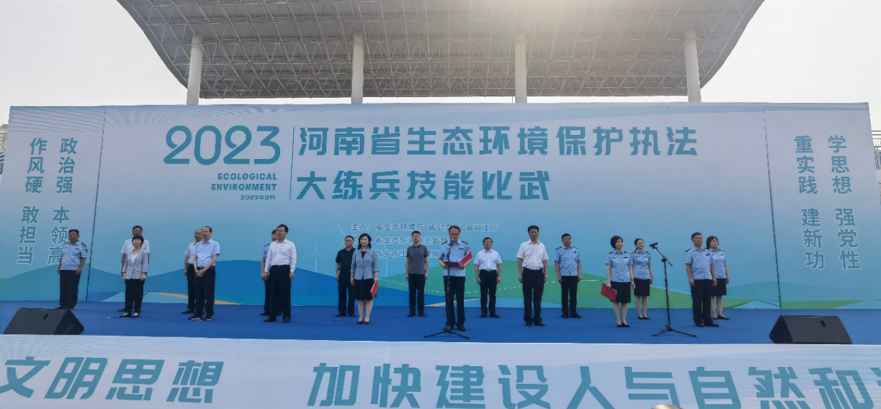 8月17日上午,由河南省生態環境廳、省公安廳、省司法廳聯合主辦的2023年全省生態環境保護執法大練兵技能比武活動在新鄉拉開了帷幕,來自全省的百名執法精兵齊聚比武擂臺,蓄勢聚能、整裝待發。此次比武共設置主題教育演講比賽、知識競賽,無人機操作技能、污染源自動監控“打假”、VR現場模擬執法、執法新裝備運用6項比武科目?;顒拥呐e辦旨在提升全省生態環境執法人員綜合素質、鍛造過硬的執法隊伍,進一步提升生態環境執法人員來之能戰、戰之能勝的實戰能力。