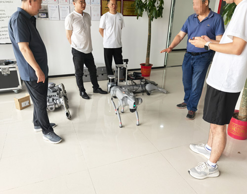 同時亮相的四足機器人同樣吸引了眾人目光。這些機器狗具備高度靈活的運動能力,能夠在各種地形條件下穩定行走、攀爬甚至跳躍,展現出卓越的環境適應能力。在世隆科技技術團隊的操作下,四足機器人完成了一系列模擬復雜場景的任務,其精準的動作控制和快速的環境感知反饋機制,充分展示了人工智能與機械工程融合的成果。工作人員為代表團成員詳細介紹了我司四足機器人在消防應急救援、公共安全、邊防巡邏、電力及化工廠巡檢等多領域成功運用案例。?