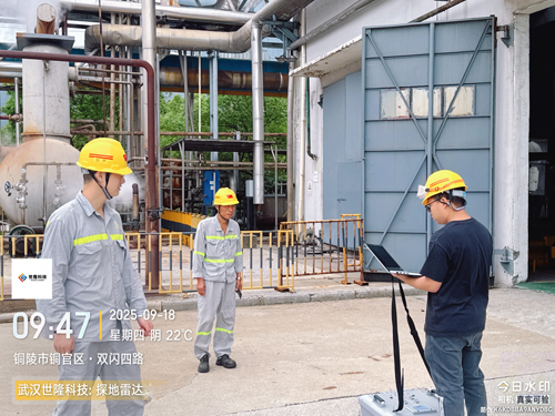 近日,武漢世隆科技有限公司技術團隊攜自主研發的SL-GPR無線探地雷達(暗管探測儀),赴銅陵有色金屬集團股份有限公司金冠銅業分公司(以下簡稱“金冠銅業”),開展地下工業管道漏點專項排查工作。此次技術服務不僅精準定位了多處隱蔽漏點,更為金冠銅業保障生產連續性、降低資源損耗提供了科學支撐,彰顯了國產探地雷達技術在工業運維領域的實戰價值。