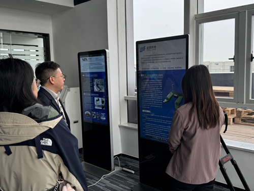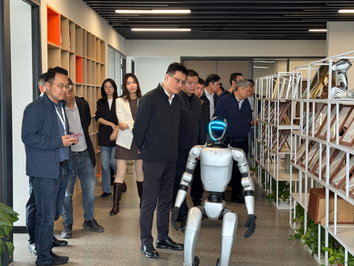 在產品展示環節,領導及專家一行對世隆科技自主研發的導覽人形機器人、巡檢四足機器人、探地雷達、無人船、無人船塢等核心產品表現出濃厚興趣,詳細詢問了產品的技術原理、性能優勢、研發投入及市場應用情況,并現場觀摩了產品演示,對各項產品的技術創新性和應用價值給予高度肯定。